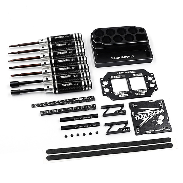 YeahRacing YT-0254BK ミニッツ用アルミツール&シャーシセットアップセット カー/ツールスタンド付