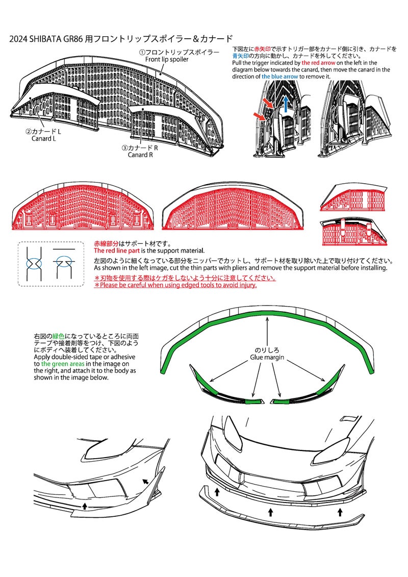 2024 SHIBATA GR86ボディ(R31W440)用として開発した、3Dプリンター製フロントリップスポイラー&カナードセットです。