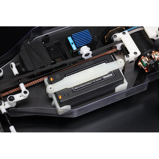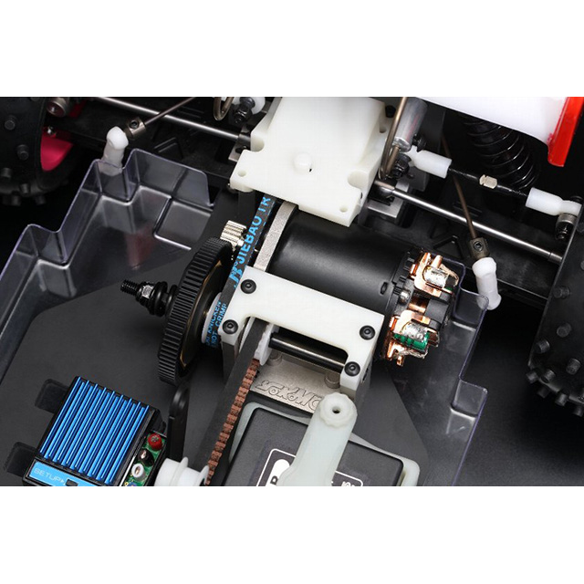 アソシエイテッド社で製造されたシャープなシルエットのプロテック4ボディを搭載、870C後期のアメリカンなシルエットがクラシックオフロードカー全盛期を匂わせます。もちろんアンダーカウルも付属しているので、ダート路面での走行でも防塵性は抜群です。