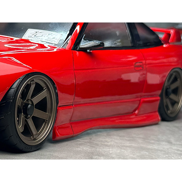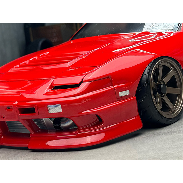 純正後期エアロや当時の叩き出し具合などを1/10 スケールに落とし込んだ。叩き出したフェンダーのデザインを維持しつつ、ドリフトが出来る195mm という車幅を実現。 別売りアイテムと合わせれば # 当時仕様 を完全に再現できます。