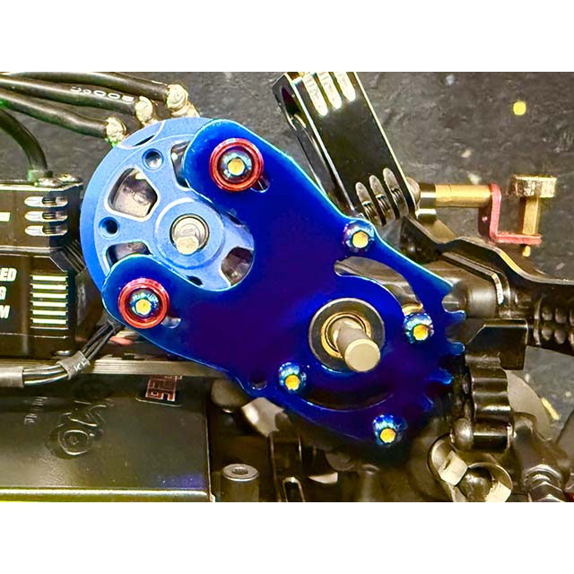 ■高強度な64 チタンを高精度に加工されたモーターマウントを使用することで、極上なマシンメイクと艶めかしい発色の焼き色によるドレスアップ効果や個性あるマシン作りが可能になります。モーターマウント取付穴は標準と同じ穴位置になります。