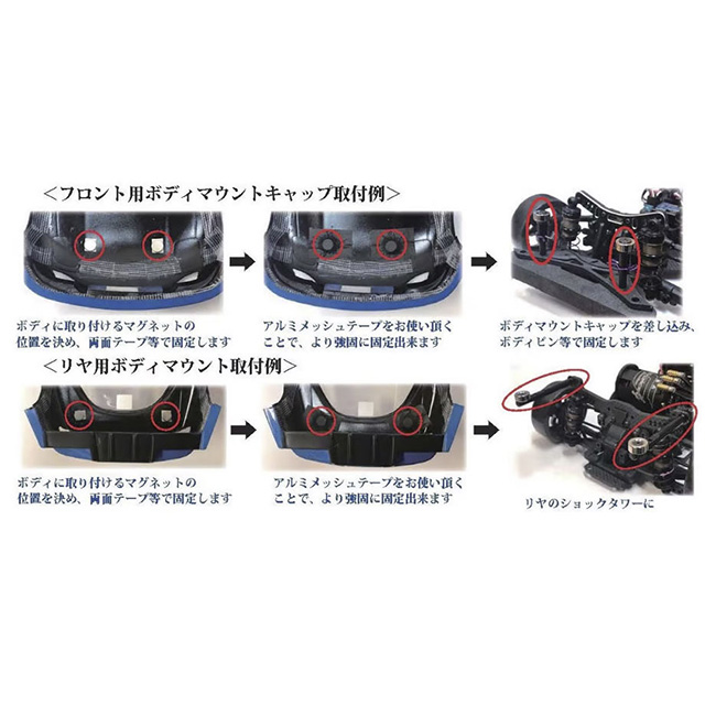 トップライン TP-81RE フロント用ボディマウントキャップ マグネットタイプ タミヤ/RDX用(6mm)レッド
