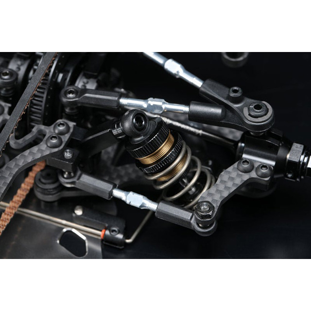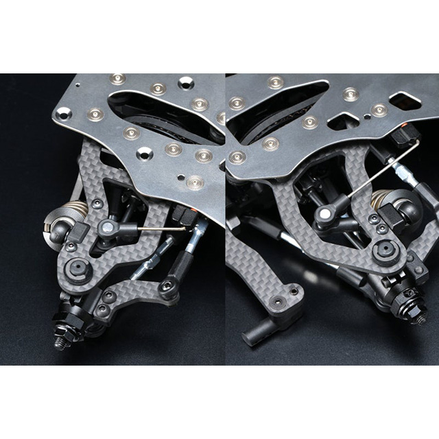 シャーシへのパーツ搭載はスチール製の高精度切削スクリューを使用。マシンビルドの精度も高まり、走行特性を引き出すことが可能です。
